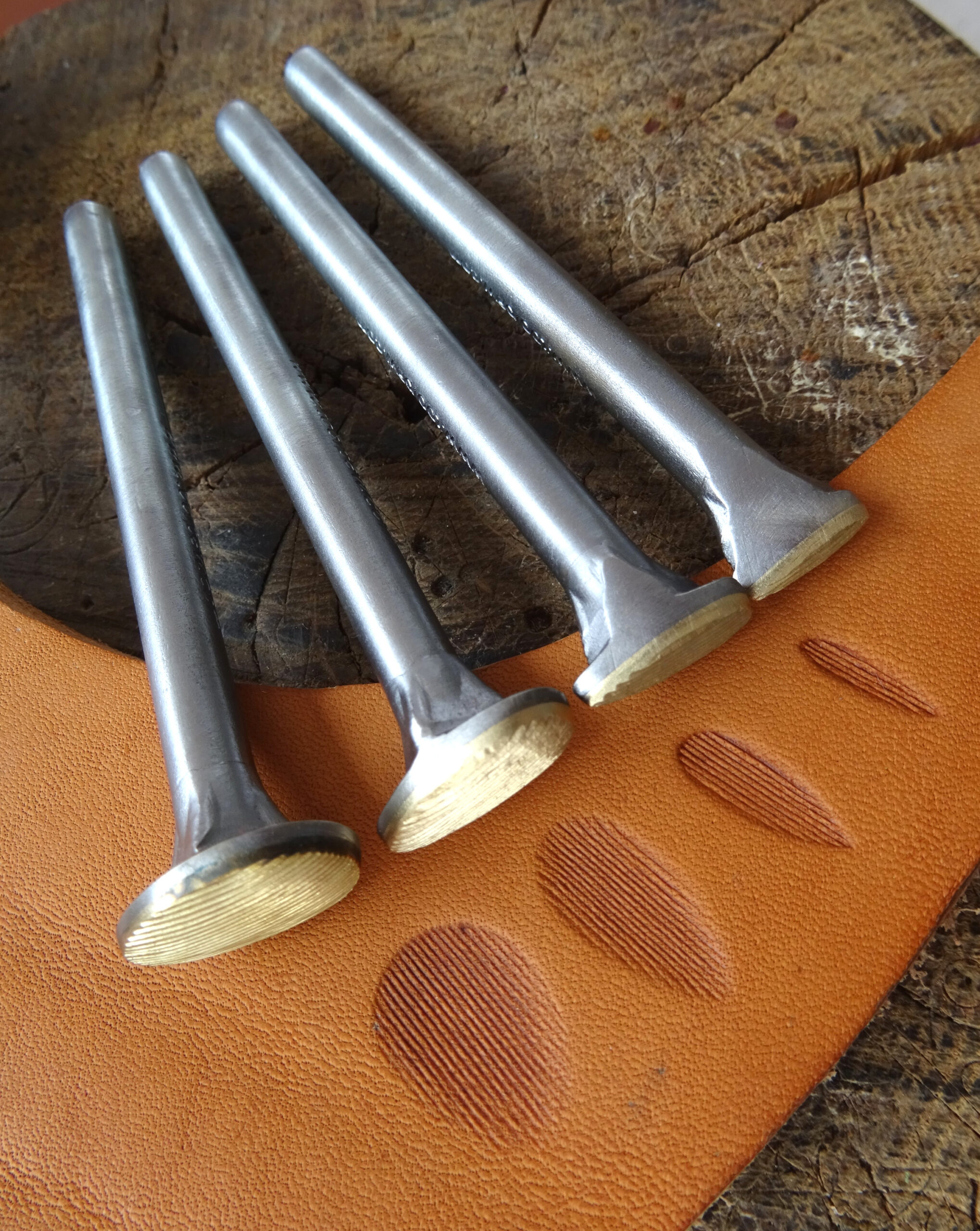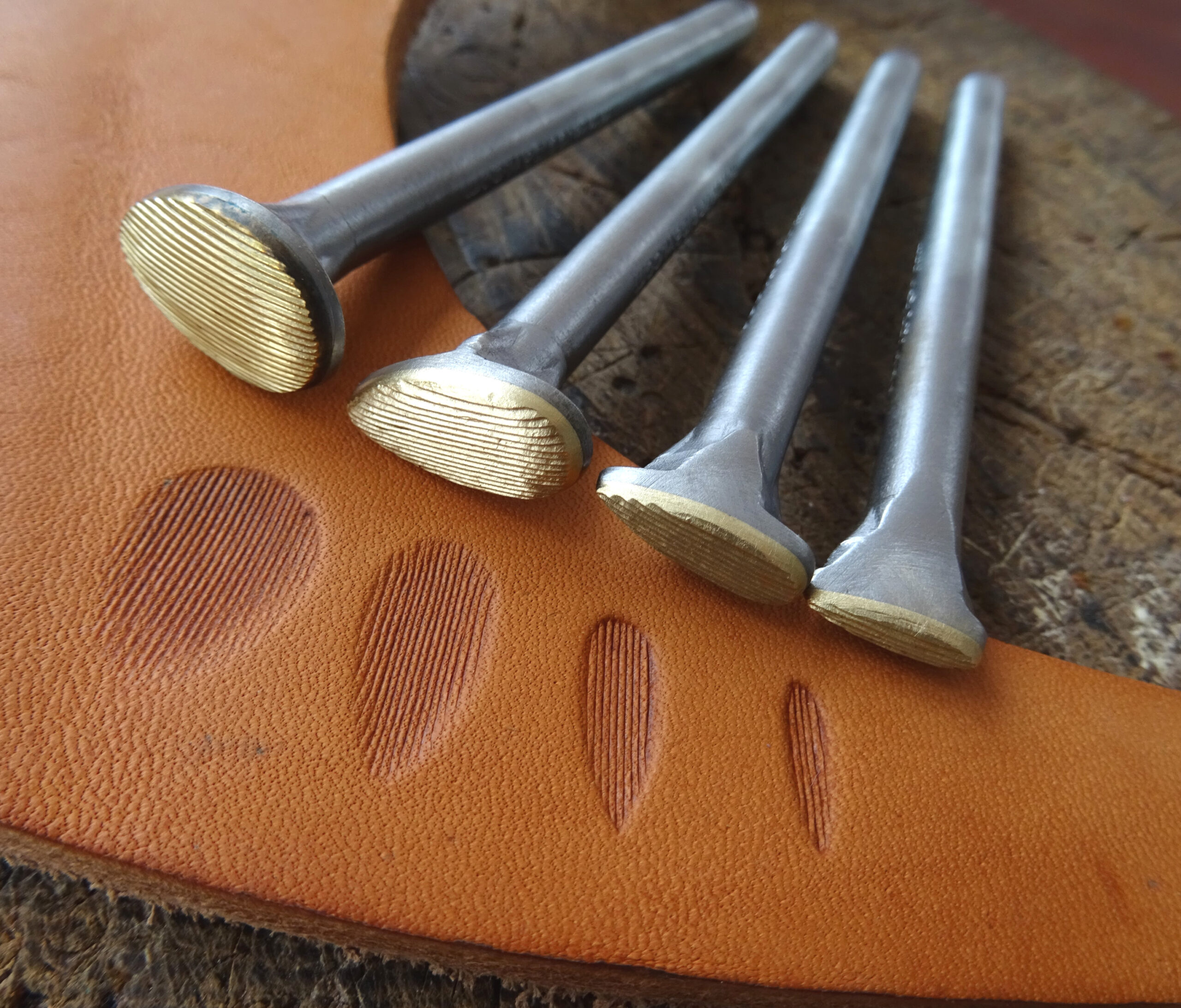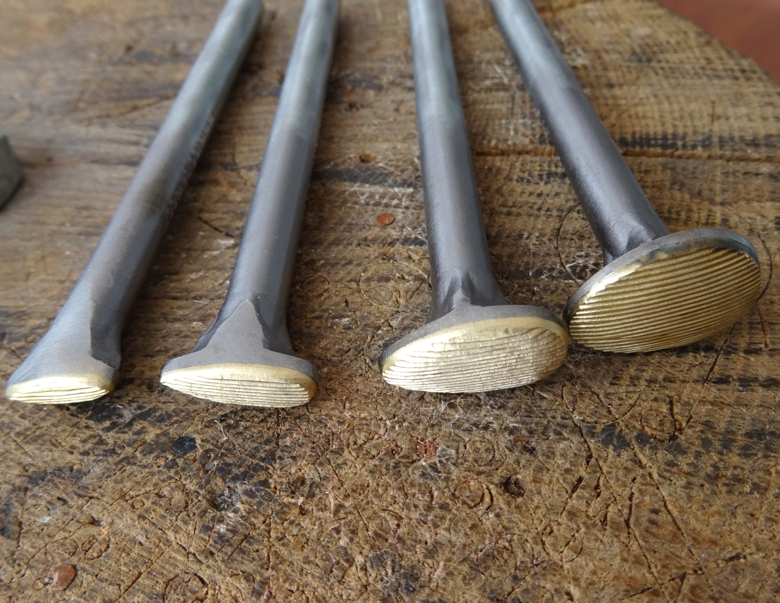 The brass motif is on a steel holder. The price is for 4 pieces with dimensions 3×12 mm, 5×15 mm 8×18 mm and 13×20 mm.