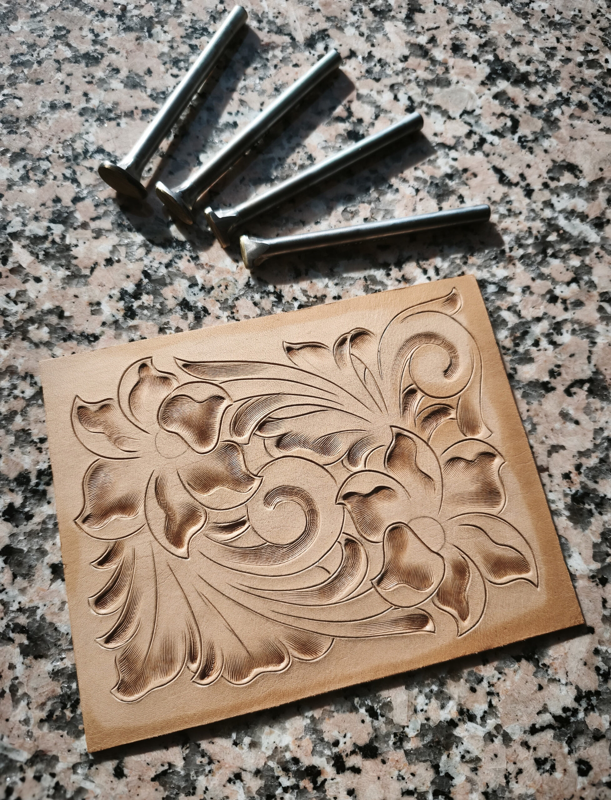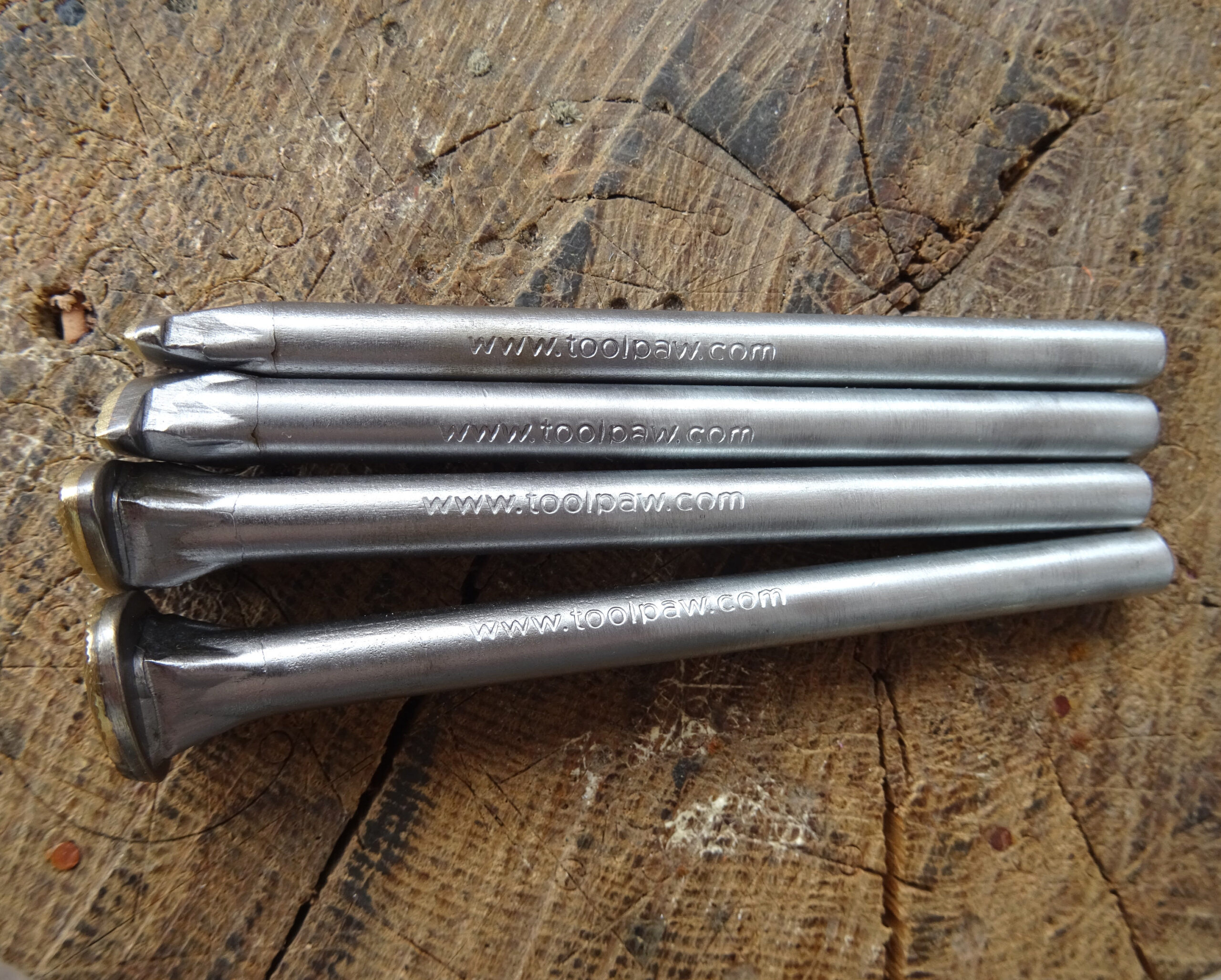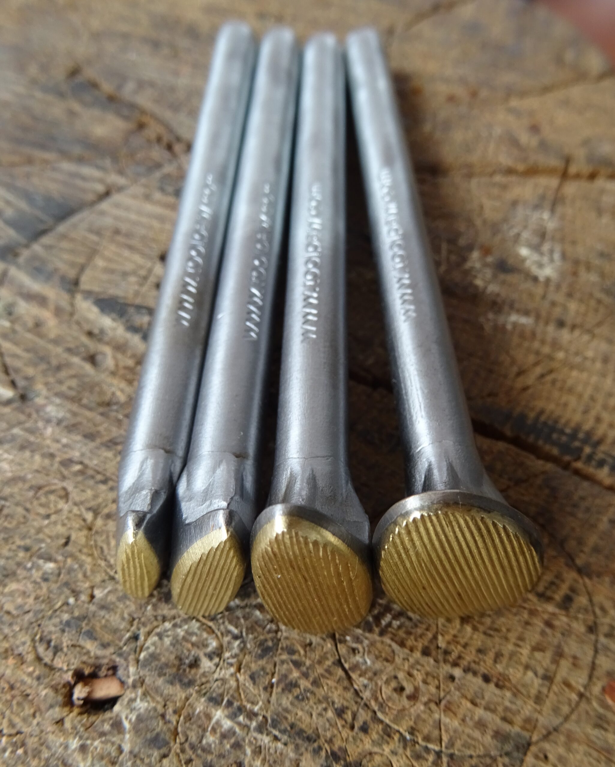The brass motif is on a steel holder. The price is for 4 pieces with dimensions 3×12 mm, 5×15 mm 8×18 mm and 13×20 mm.