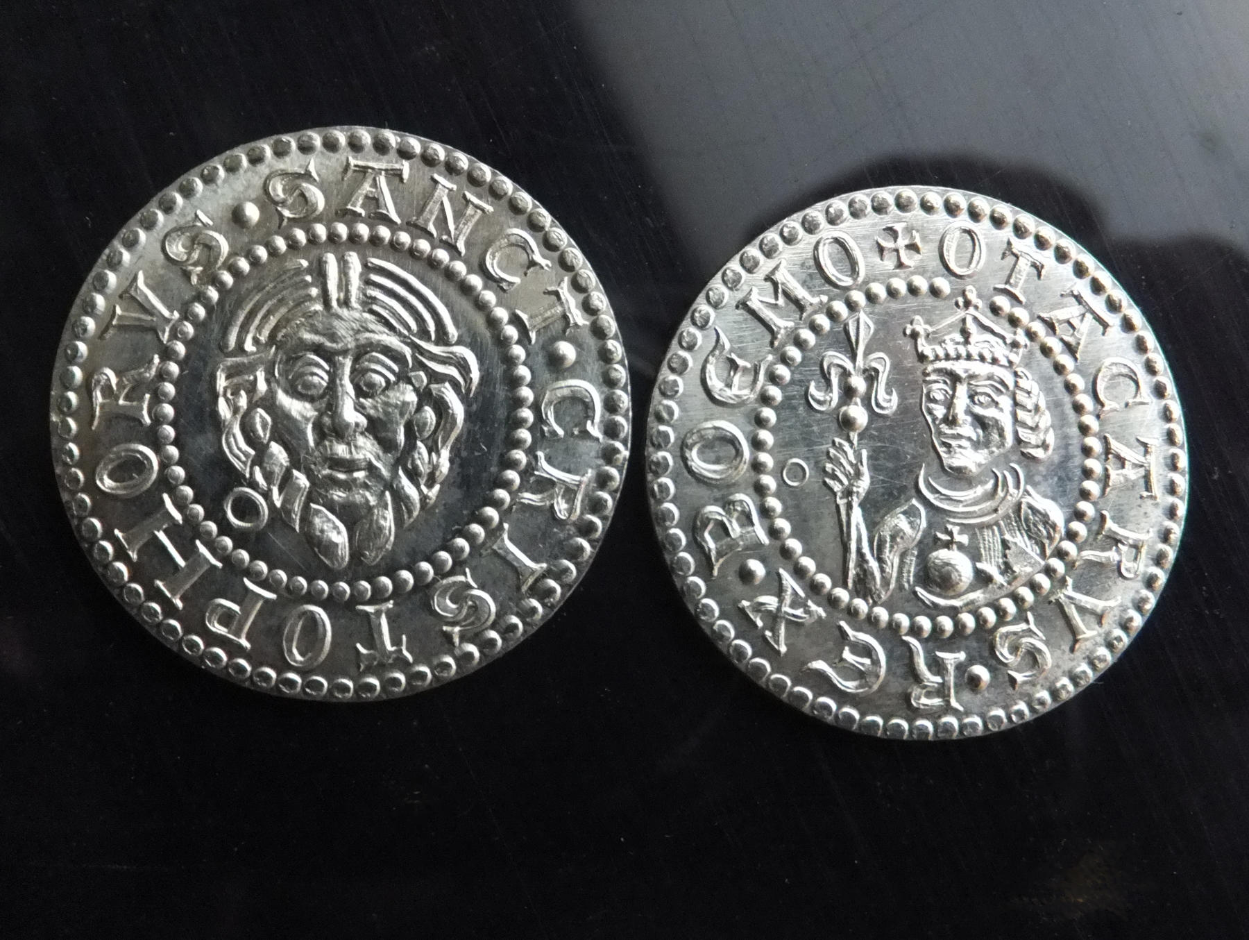 These coins were made for the film When the Lion Roars – a portrait of two important figures of the Czech Middle Ages: King Přemysl II. Otakar and the Franciscan monk Odoric, the son of a soldier from Otakar’s army, our oldest traveler. www.filmsvatos.com